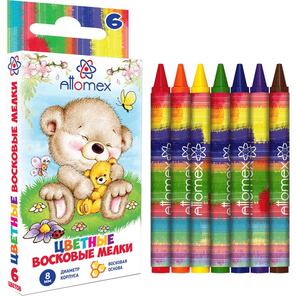 Мелки восковые 6цв Attomex в картонной коробке с подвесом