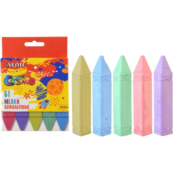 Мелки 5цв deVENTE Cosmo прямоугольные 2x2x10,8 см, для асфальта в картонной коробке
