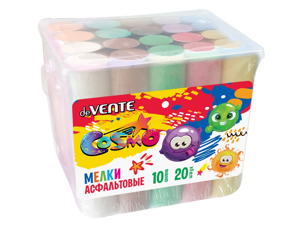 Мелки 10цв/20шт deVENTE Cosmo в форме усеченного конуса 10,5х2,2х2,5 см для асфальта в пластик короб