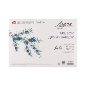 Альбом-склейка для акварели "Ладога", 300 г/м2, А4, 100% хлопок, 12 листов, среднее зерно