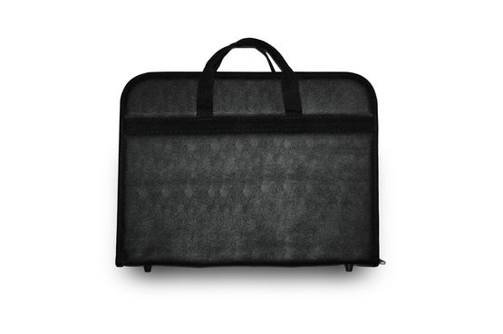 Папки тканевые на молнии отечественного производства предназначены для переноски папок и листов бумаги, склеек, альбомов, нетяжелых планшетов, готовых работ в рамах, а также художественных и графических аксессуаров. Папки этой серии отличаются стильным дизайном и благородным черным цветом. Папки имеют 1 или несколько внешних карманов для графических или чертёжных принадлежностей и аксессуаров. Жёсткая форма папки обеспечивает защиту вашим работам во время переноски.