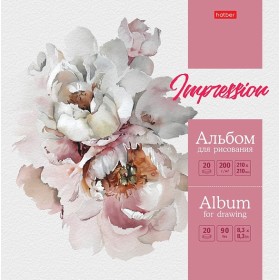 Альбом для акварели 20л, клей, 210х210мм, 200гр Эконом мат ламин,тисн, жест. подложка Нежный пион