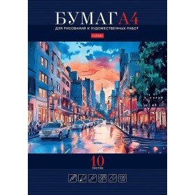 Набор бумаги для рисования и художественных работ 10л А4 220гр папка тиснение Ночной вояж Хатбер