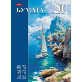 Набор бумаги для рисования и художественных работ 20л А4 220гр папка тиснение Одинокий парус Хатбер