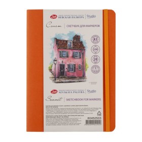 Скетчбук для маркеров Сонет, оранжевый, сшивка, двухсторонняя бумага, 220 г/м2, А5, 20 листов