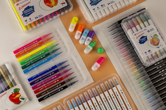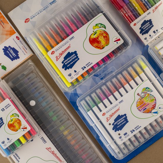Набор акварельных фломастеров "Я-Художник!" в удобном пластиковом пенале включает 6 или 12 ярких оттенков. Эти акварельные фломастеры можно размывать водой, что позволяет создавать красивые переходы. В палитре представлены следующие цвета: черный, коричневый, красный, сиреневый, фиолетовый, ультрамариновый, голубой, изумрудный, зеленый, ярко-желтый, оранжевый и розовый. Длина каждого фломастера составляет 14,2 см, диаметр корпуса – 0,9 см, а ширина линии достигает 5 мм.