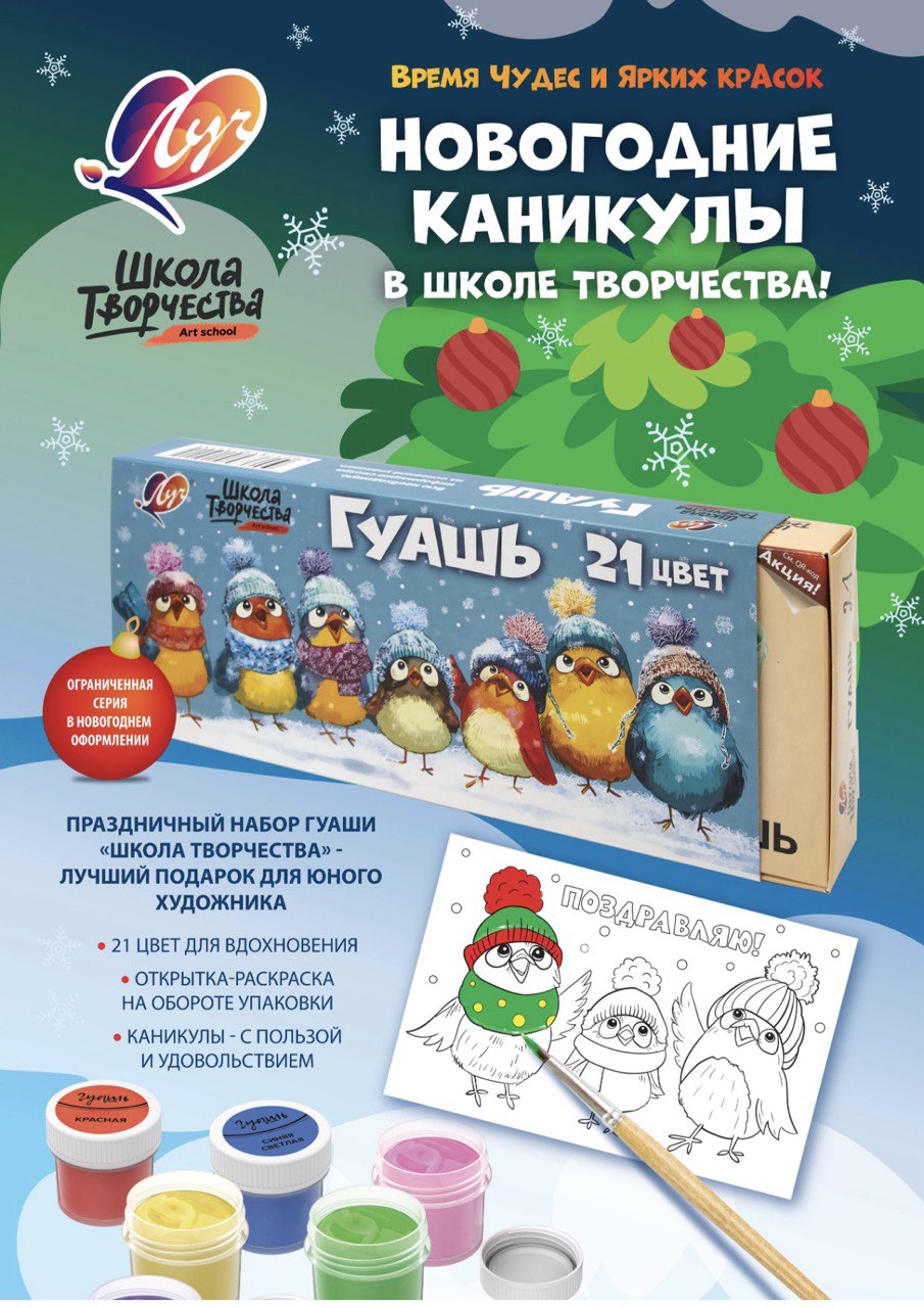 Набор гуаши Луч в новогоднем оформлении - отличный подарок юным художникам!